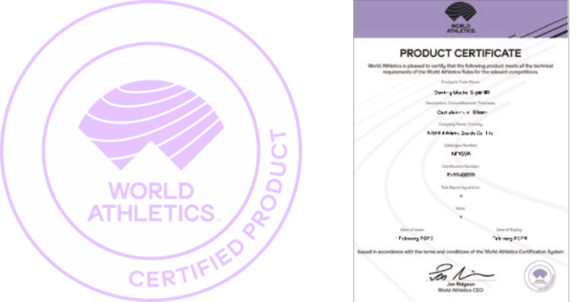 NISHI has obtained the WA certification and its products have been employed as authorized equipment in international competitions.